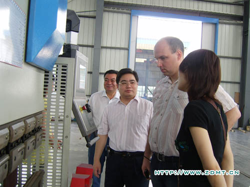 在中德公司带领的伴随下,尼尔森师长教师离开了咱们的车间。尼尔森师长教师特别存眷数控类机床,对数控机床制品都逐一细细检查。在正在出产中的大型数控双机联动折弯机前,尼尔森表现出了极大的乐趣,当真的向担任人领会机器的环境。在大型拆卸车间,尼尔森一行对中德车间的办理规划及环境表现了赞美,固然气候很热,清洁整齐的车间环境让他们轻松地停止观赏。别的,担任人还向他们先容了产物设想方面的一些小细节如夹块、T型槽等等,这些细节表现出了中德产物使客户在利用产物进程中将会获得极大的方便。