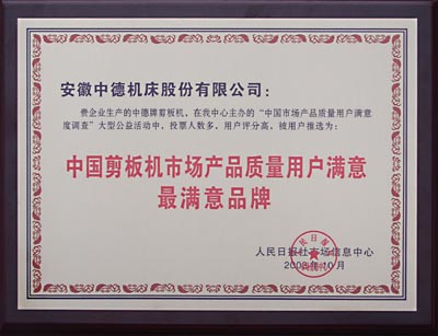 由全民日时报社市面讯息之间主理、国家大物流网点与网络推销配合会、国家大纺机产业链行业研究会、国家大工业机气行业研究会等60家权术巨子行业领域农学会、《员工日报》、《科学技术日报》等10家权势巨子报刊、国民网及搜狐网等权势巨子网站协办撑持,为期三个多月的“中国市场品德用户对劲度查问拜访”大型公益勾当终究发表。我公司出产的中德牌剪板机,在本次🅺公益勾当中,投票人数多,用户评分高,被用户推举为:中ꦰ液压剪板机市场的产品品行我们对劲最对劲企业。