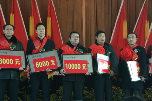 我公司取得了“征税大(da)户”(奖(jiang)金10000元)和“品牌(pai)与科技立异进步前辈🐟企业”(奖(jiang)金2000元)两项(xiang🅠)大(da)奖(jiang),我司青岛办事(shi)处司理(li)杨墨同道(dao)小我荣获了“十佳倾销(xiao)员”称呼。